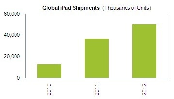 iSuppli now predicts Apple will ship 12.9 million iPads in 2010, an increase from the previous forecast issued April 2 of 7.1 million units. Shipments will rise to 36.5 million in 2011 and 50.4 million in 2012, predicts the research group.