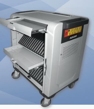 Dukane (www.dukane.com) has rolled out the US$2,200 MCC2 cart, which will sync/charge 32 iPad devices. According to the folks at Dukane, the MCC2 provides: