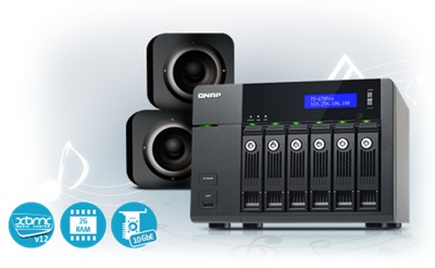 By connecting a TS-x70 Pro series model to a HDTV via HDMI, users can enjoy multimedia contents with 5.1 channel surround sound supported by the XBMC media player provided in the QNAP HD Station. The TS-x70 Pro series delivers not only high-speed transcoding capabilities but also high-quality audio to provide a complete home theater experience, Hsu says.