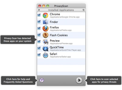 It costs US$14.99 and is available at http://www.privacyscan.securemac.com. A 15-day demo version is also available.