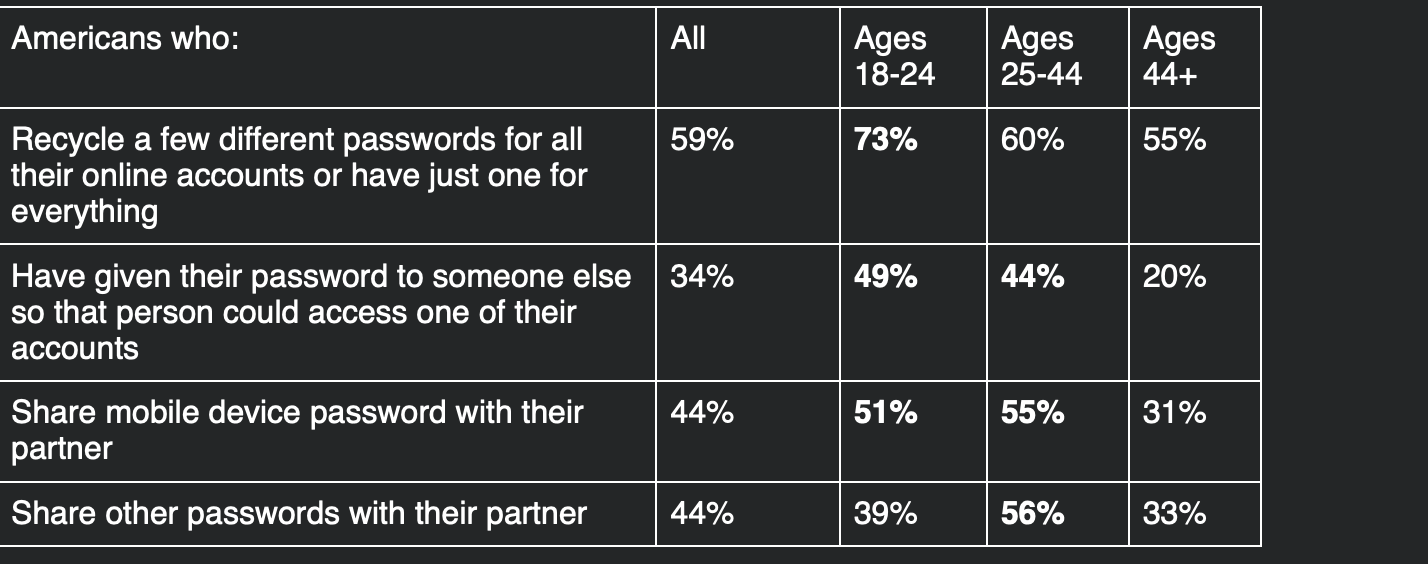 A full half of Americans (50%) have accessed someone else’s account using their password. The minority who have done so without permission include:
