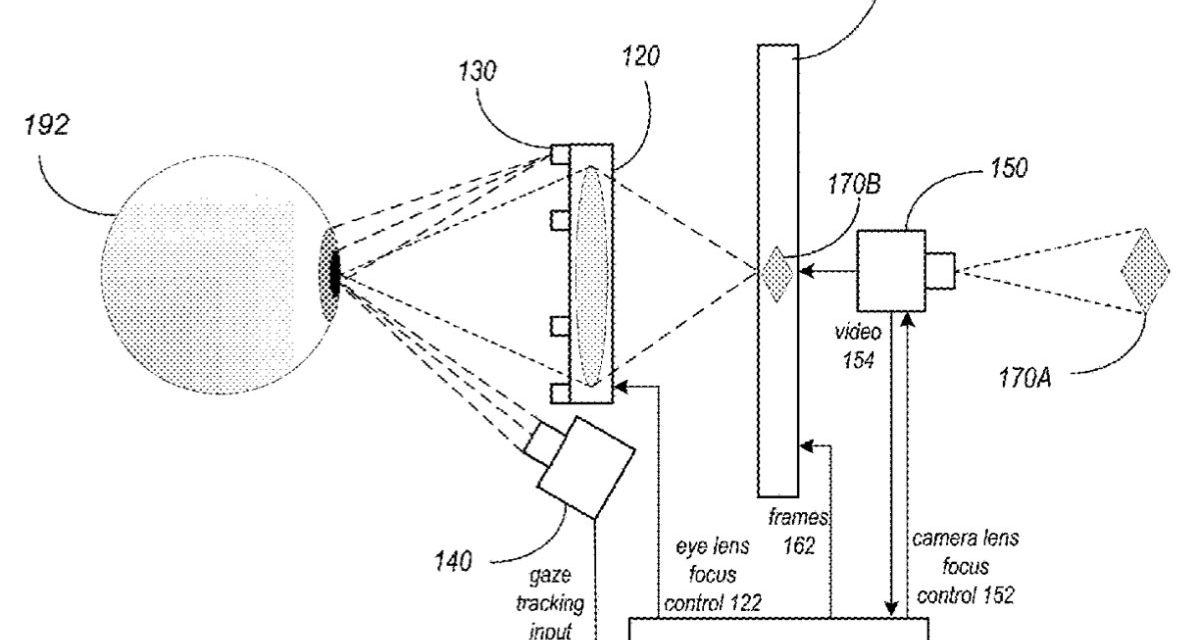 Here’s the summary of the patent: “Methods and apparatus for focusing in virtual reality (VR) or augmented reality (AR) devices based on gaze tracking information are described. Embodiments of a VR/AR head-mounted display (HMD) may include a gaze tracking system for detecting position and movement of the user’s eyes. For AR applications, gaze tracking information may be used to direct external cameras to focus in the direction of the user’s gaze so that the cameras focus on objects at which the user is looking.