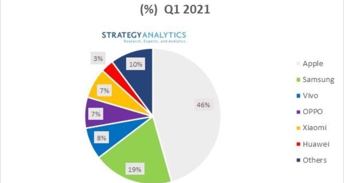 According to the latest research from Strategy Analytics, global smartphone shipment revenue rose 7% year-on-year in the first quarter of 2021 to pass US$100 billion in wholesale terms.