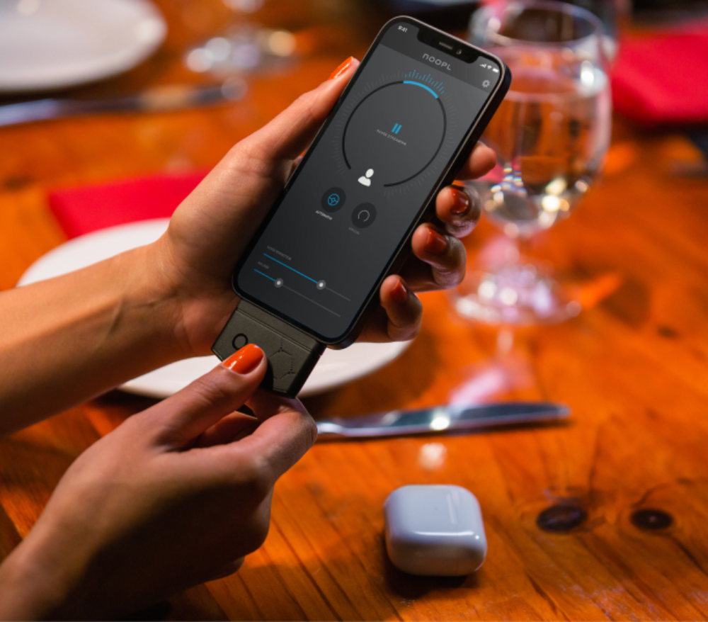 The iPhone plug-in device helps users reduce background noise and improve hearing in noisy environments. Noopl utilizes three microphones and spatial audio features enabled by iOS 14 for the AirPods Pro to track head movements and automatically focus on the voice of the person you are looking toward. According to the developers of Noopi, this improves conversations, reduces the stigma of hearing aids, and helps people better connect with those around them.