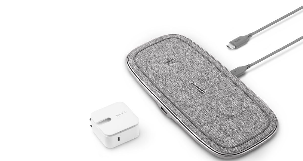 Moshi has debuted the Sette Q and the Flekto. The former (pictured) is an US$99.95 dual wireless charring pad 15W EPP with a power adapter.