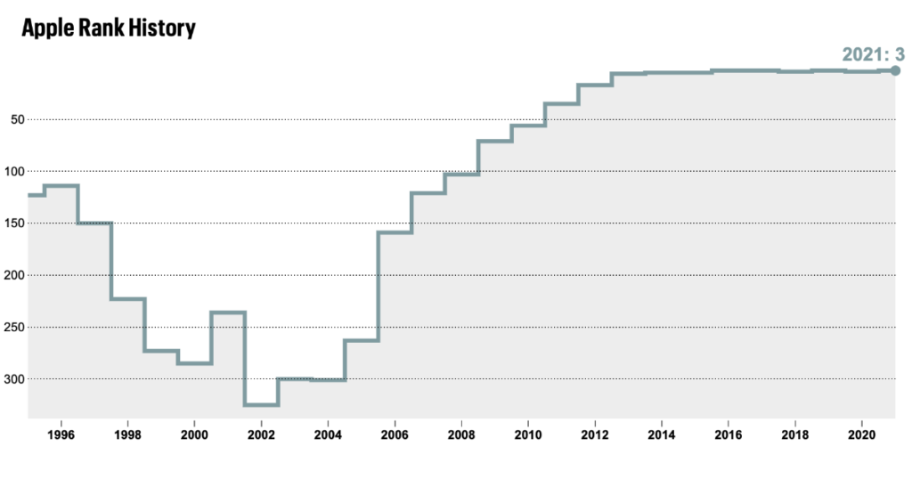 Apple ranks third in the 2021 FORTUNE 500 listing, which ranks U.S. companies by revenue. That’s up from fourth place in 2020. However, the tech giant only ranks 188th when it comes to “diversity, equity and inclusion.”