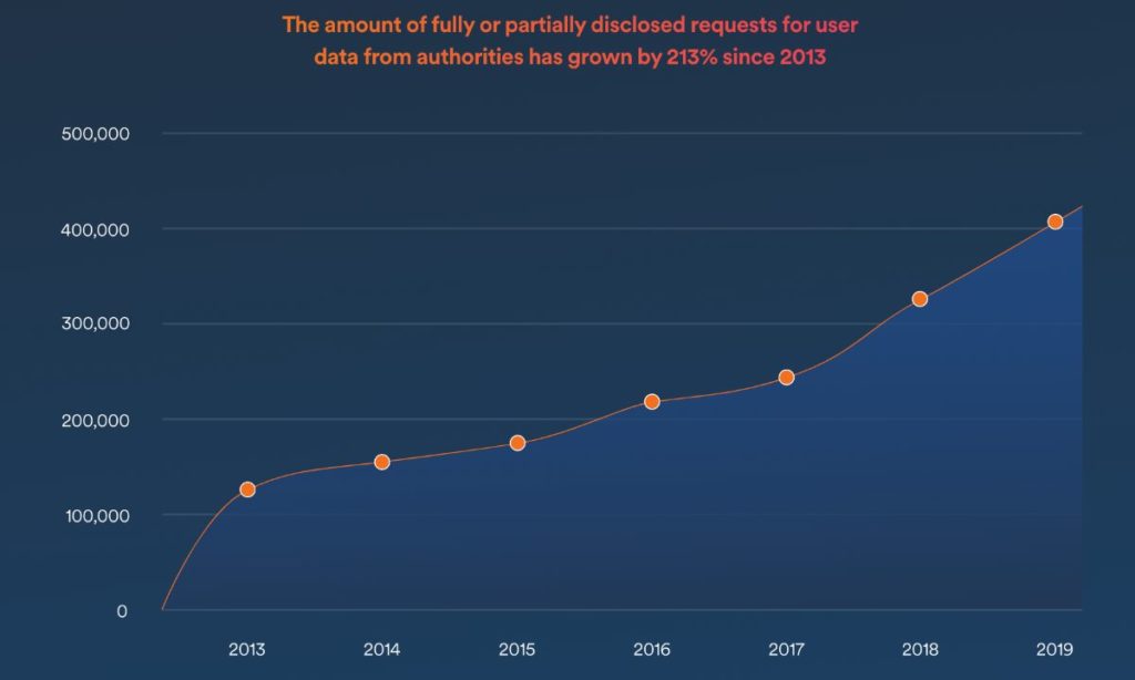 Cybersecurity company Surfshark has released a new study, “User Data Surveillance Report” that analyzes user data requests that leading tech companies received from 66 countries between 2013 and 2020.