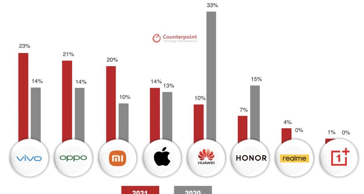 Vivo took the first spot during the first three weeks of June, making up 23% of the smartphone sales of the top eight OEMs, according to Counterpoint’s smartphone tracker. The second and third spots went to OPPO (21%) and Xiaomi (19%).