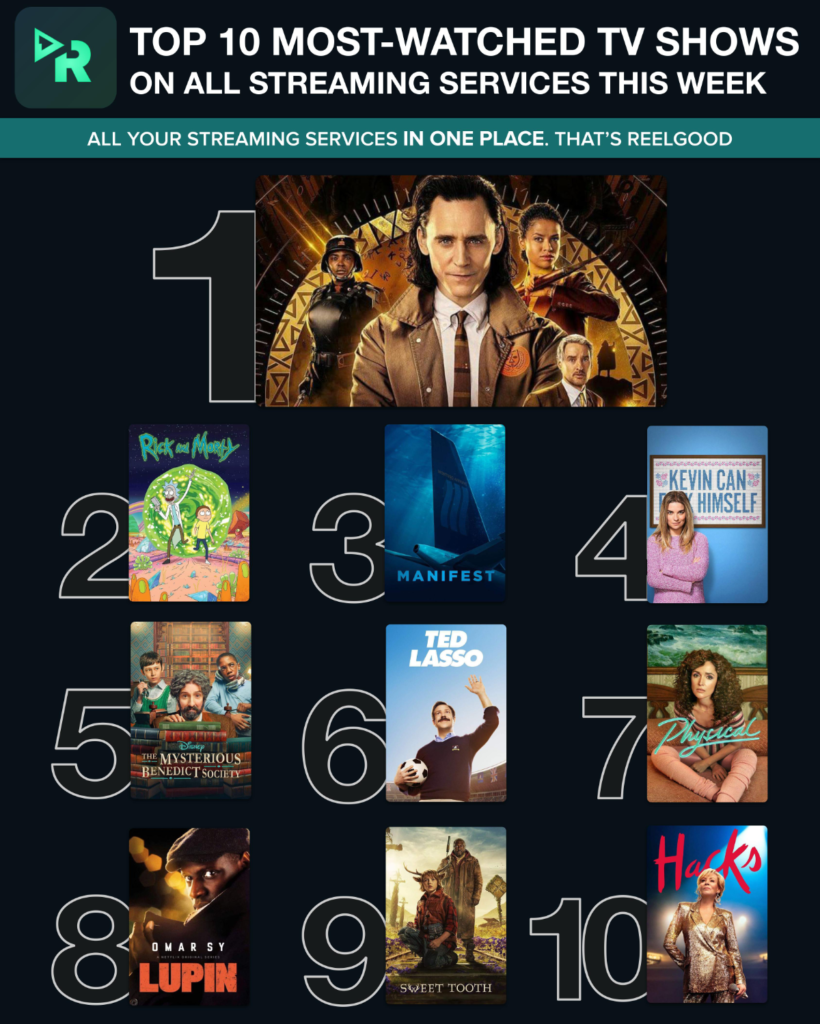 Reelgood, a U.S. movie and TV streaming search engine, has released its list of the top 10 SVOD (subscription video on demand) shows this week. And two Apple TV+ series — “Ted Lasso’ and “Physical” — make the list.