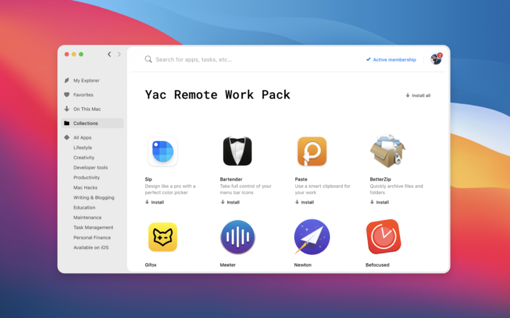 Yac Remote Work Pack will be the flagship in the newly launched Collections by Setap. Collections are ready-made sets of macOS apps created to help users complete a specific task.