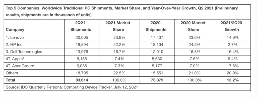 The surge in personal computer (PC) demand continued through the second quarter of 2021 (2Q21) despite global component shortages and logistics issues, according to IDC. And Mac sales grew 9.4% year-over-year.