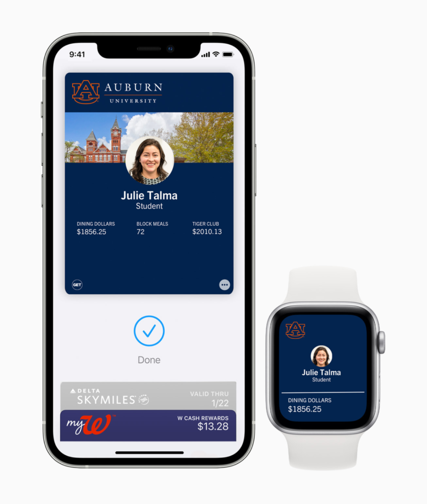 In April 2021, for the first time since launching mobile student IDs in Wallet, students used their mobile IDs to make purchases and access campus buildings more than they used plastic ID cards, according to Apple. This fall, the University of Alabama will be the first school to exclusively issue mobile student IDs to their 38,000 students with eligible devices.