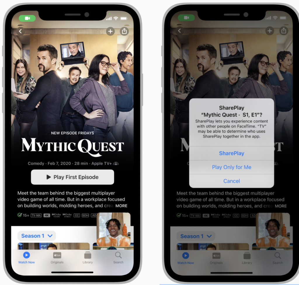 Here’s how Apple described SharePlay when it was announced at June’s Worldwide Developer Conference: Users can now share experiences with SharePlay while connecting with friends on FaceTime, including listening to songs together with Apple Music, watching a TV show or movie in sync, or sharing their screen to view apps together. SharePlay works across the iPhone, iPad, and Mac. With shared playback controls, anyone in a SharePlay session can play, pause, or jump ahead.