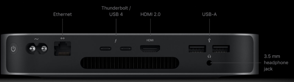 He says it will be powered by an M1X processor and sport a new external chassis with a “plexiglass-like” reflection surface on top of an aluminum enclosure. Gurman adds that the updated Mac mini should pack four USB4 / Thunderbolt 3 ports, two USB-A, Ethernet, and HDMI out. The current mini (pictured) has two Thunderbolt/USB ports, one USB-A port, one Ethernet port, and HDMI out. Gurman expects the next Mac mini to to arrive in the “next several months.”