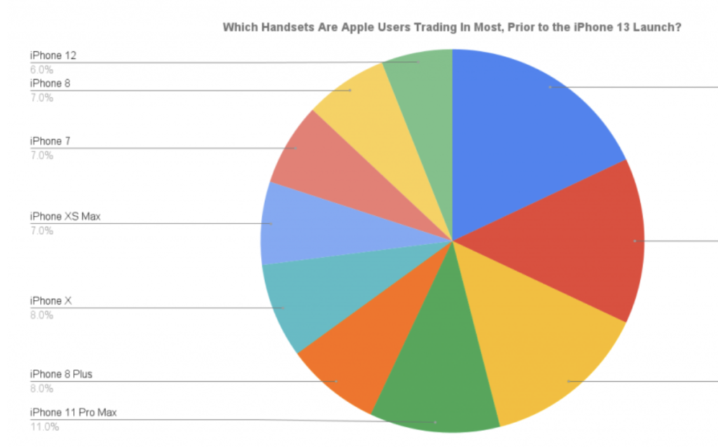The iPhone 11 tops the trade-in table. Eighteen percent of all iPhone’s users traded in between August 27 and September 10 were iPhone 11-series handsets. The iPhone XR was tied with the iPhone 12 Pro Max as the second most traded-in iPhone at SellCell. Each has 14% of all handset trade-ins.it was prior to the Apple announcement.