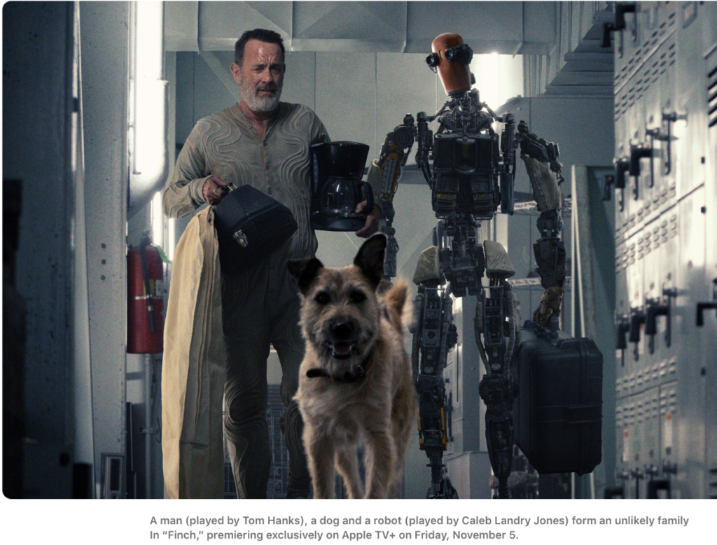 Apple has released a trailer for its upcoming original feature film “Finch” that stars Tom Hanks and Screen Actors Guild Award winner Caleb Landry Jones (“Get Out,” “Three Billboards Outside Ebbing, Missouri.” It will premiere on Apple TV+ on November 3.