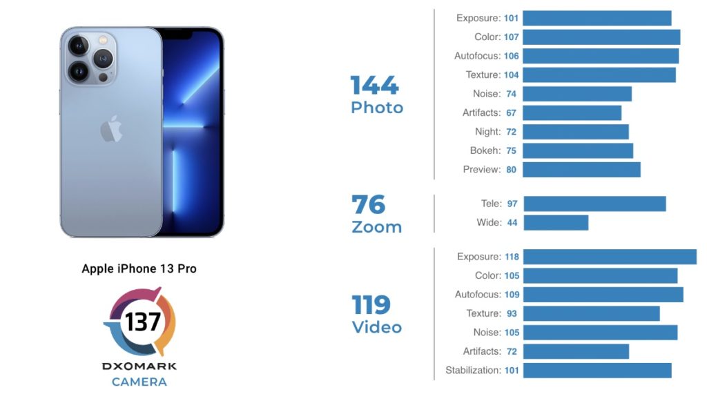 And don’t just take my word for it. Check out this tidbit from DXO Mark’s test of the iPhone 13 Pro’s camera system: With a DXOMARK Camera overall score of 137 the Apple iPhone 13 Pro mingles among the very best devices in our camera ranking. The overall score is compounded by an excellent Photo score of 144. Like for all iPhones color rendering is vivid with nice skin tones and a slightly warm touch and the camera is generally very reliable. Overall Photo performance is quite similar to the 12 Pro we tested last year but improvements have been made in several areas.