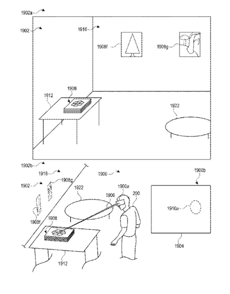Here’s Apple’s abstract of the patent: “In an exemplary process for interacting with user interface objects using an eye gaze, an affordance associated with a first object is displayed. A gaze direction or a gaze depth is determined. While the gaze direction or the gaze depth is determined to correspond to a gaze at the affordance, a first input representing user instruction to take action on the affordance is received, and the affordance is selected responsive to receiving the first input.”