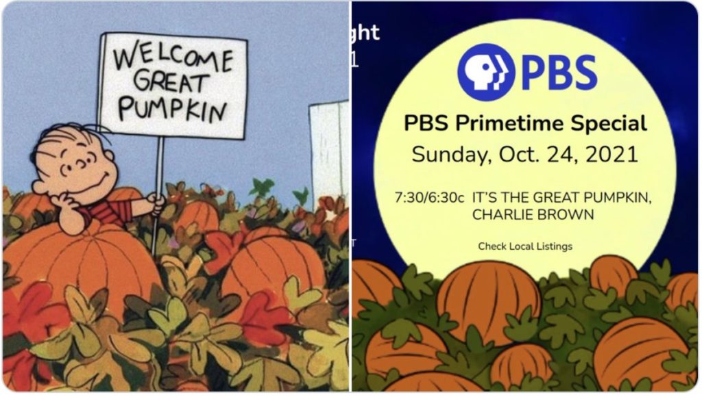 “It’s the Great Pumpkin, Charlie Brown!” Airs today at 7:30 p.m. (Eastern) on PBS and PBS Kids.