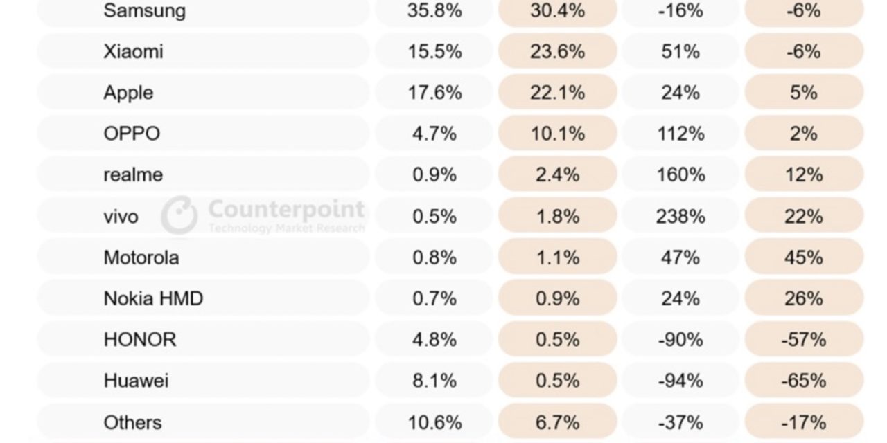 “Xiaomi, Apple and OPPO have gained significant share over the last year. Xiaomi continued to grow well across most European markets while OPPO gained well in Western Europe, helped along by its recent merger with OnePlus,” says Counterpoint Research Associate Director Jan Stryjak. “Apple, meanwhile, was boosted by the launch of the iPhone 13 towards the end of the quarter. The iPhone 12 was launched in early quarter four of 2020. Samsung retained its top spot having largely recovered from its supply woes earlier on in the year. But it was still down both annually and sequentially. Having said that, it could have been worse had it not been for the popularity of the Galaxy Z Flip 3, particularly in Western Europe.”