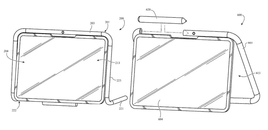 Apple has been granted a patent (11,169,574) for “peripheral housing for a computing device.” It involves an iPad case/stand combo with an Apple Pencil holder.