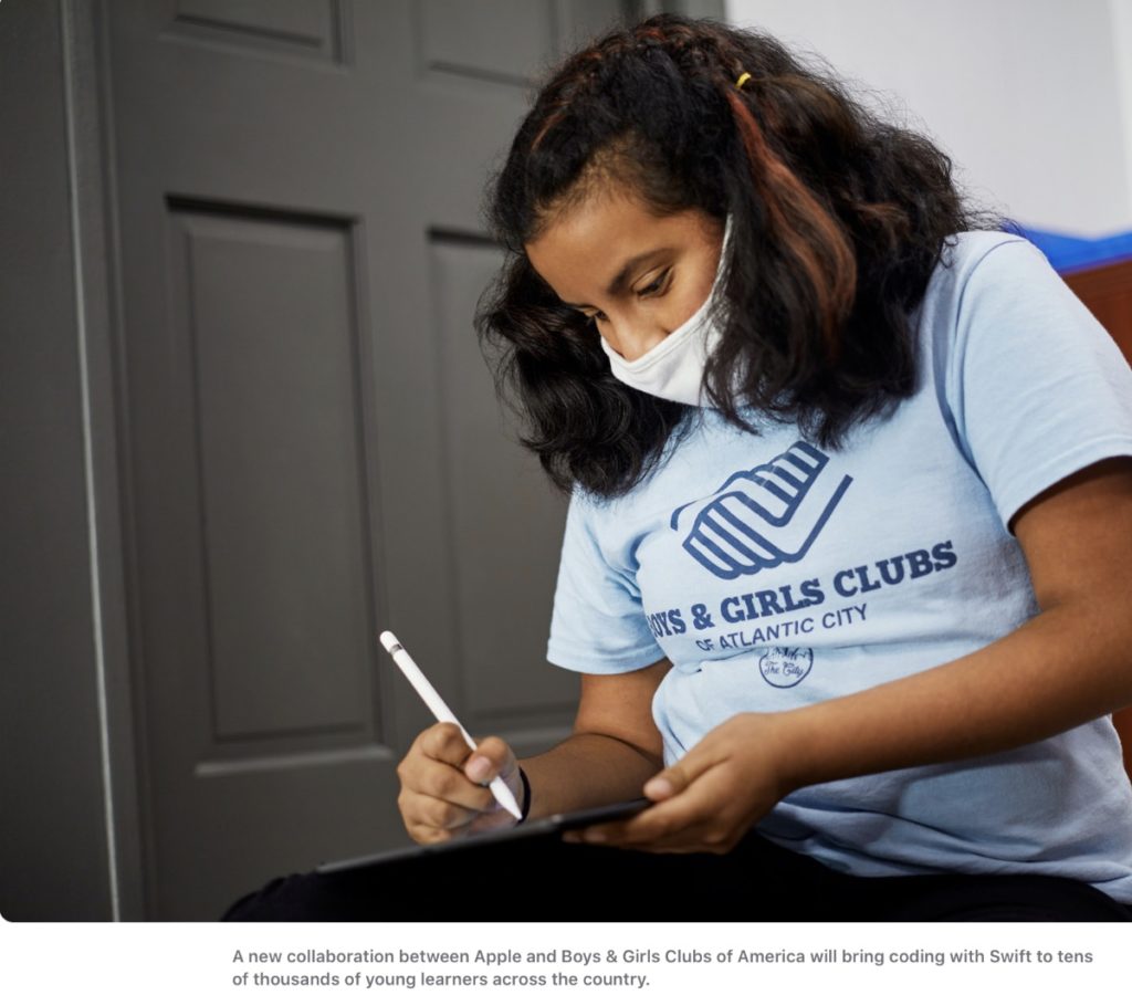 The tech giant says this new collaboration will bring coding with Swift to tens of thousands of students across the country, building on Apple’s existing partnership with Boys & Girls Clubs of America through the company’s Community Education Initiative in support of its Racial Equity and Justice Initiative.