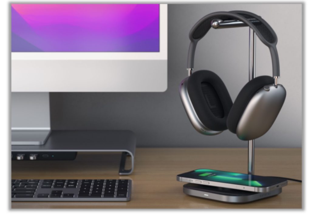 Satechi has announced the 2-in-1 Headphone Stand with Wireless Charger, which allows users to stow away headsets on a stainless-steel arm with padded grips, while maintaining a charge on devices including the iPhone 13, AirPods, and more.
