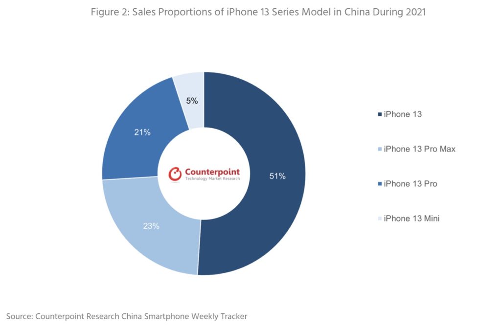 Among Apple’s iPhone 13 models the base model recorded the highest sales proportions, followed by iPhone 13 Pro Max and iPhone 13 Pro.