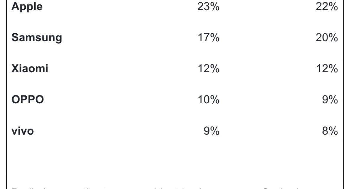 However, overall smartphone shipments for the quarter grew just 1%, as vendors faced supply chain problems and a resurgence in COVID-19 cases, according to Canalys. The research group says Samsung took second place, down from the top spot in the third quarter of 2021, with a market share of 20%. Xiaomi maintained its third-place position with a 12% share. OPPO and vivo completed the top five with 9% and 8% shares respectively.