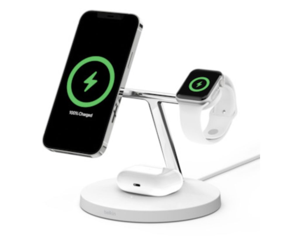 According to the folks at Belkin, it delivers fast and efficient charging speeds for iPhone 13 and iPhone 12 models, Apple Watch Series 7, and AirPods. It’s engineered with MagSafe to provide up to 15W of charging power to iPhone 13 and iPhone 12 models