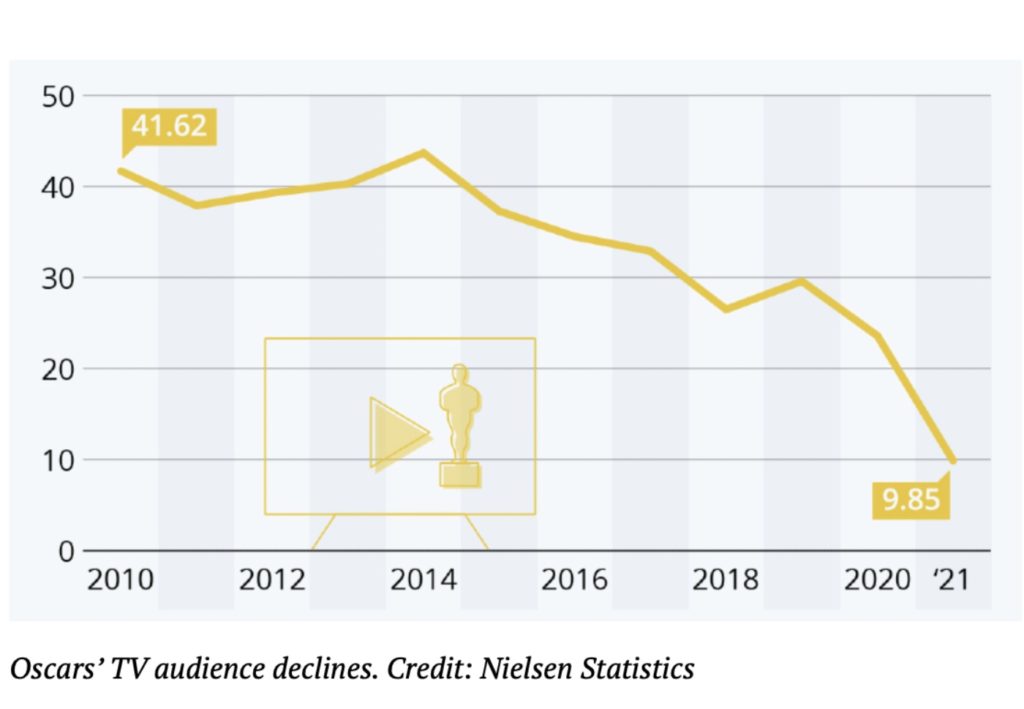 Here’s the list of Best Picture nominees: “Nightmare Alley,” “Don’t Look Up,” “Dune,” “Drive My Car,” “Belfast,” “Licorice Pizza,” “The Power of the Dog,” “West Side Story,” “King Richard,” and “CODA.” How many of these films have you seen? I can assure you that the average person has seen few of them.