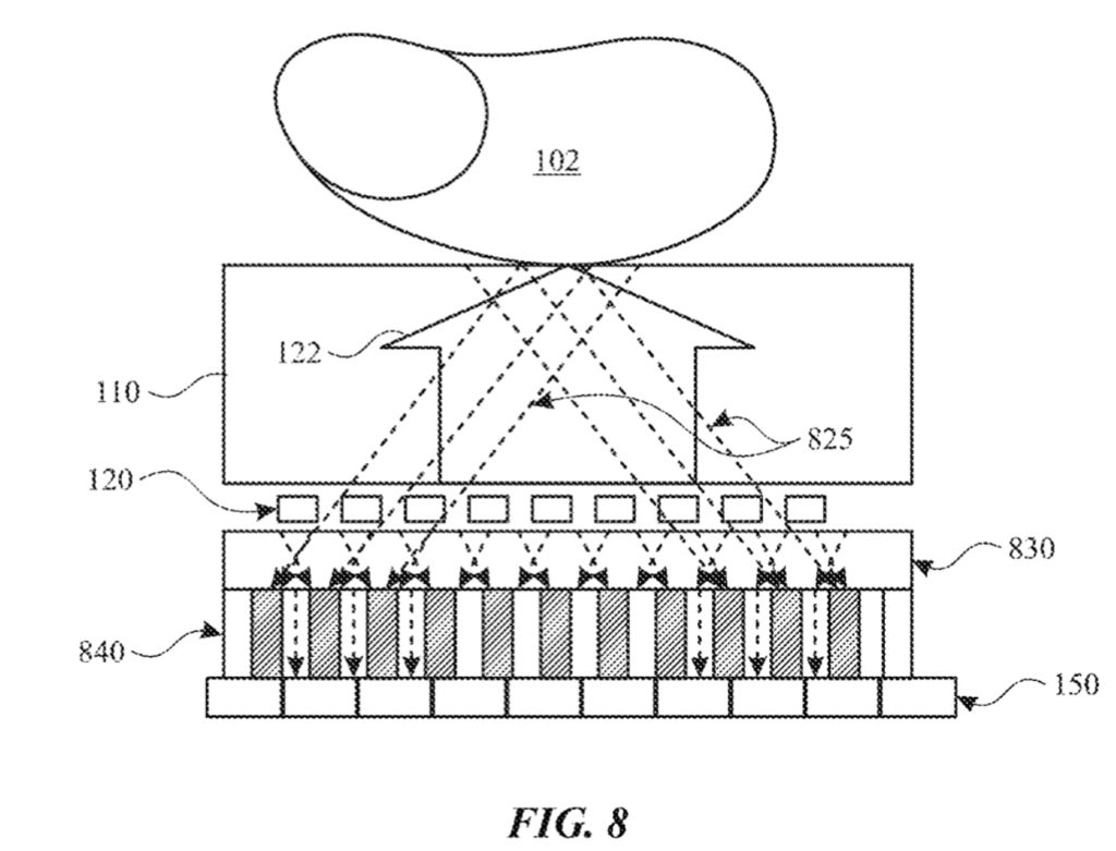 The patent is dubbed “under-display fingerprint sensing based on off-axis angular light.” Fingerprint sensing and matching is widely used as a reliable technique for personal identification or verification. Apple says that an optical fingerprint-sensing device may be particularly advantageous for verification and/or authentication in an electronic device.