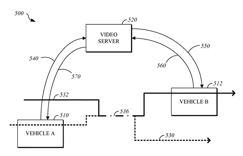 Apple’s plan is for exterior cameras mounted on an Apple Car that records video. The video and frames of it can not only be viewed by folks inside the car, but can be shared with others. It can also be transferred from one Apple Car to another.