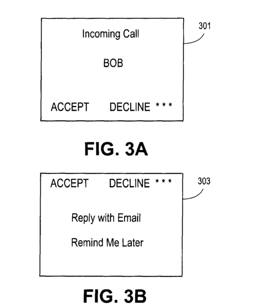 In the patent filing, Apple says that a common disadvantage with current incoming call screens on handheld devices is that a user can only accept the call, decline the call, or send the caller directly to voicemail. If users want to perform another action, such as to reply to the caller with an email instead of accepting the call, or be reminded to call the caller back, they have to first decline the call and then separately access other features of the device, which consists of more steps and is more time consuming.