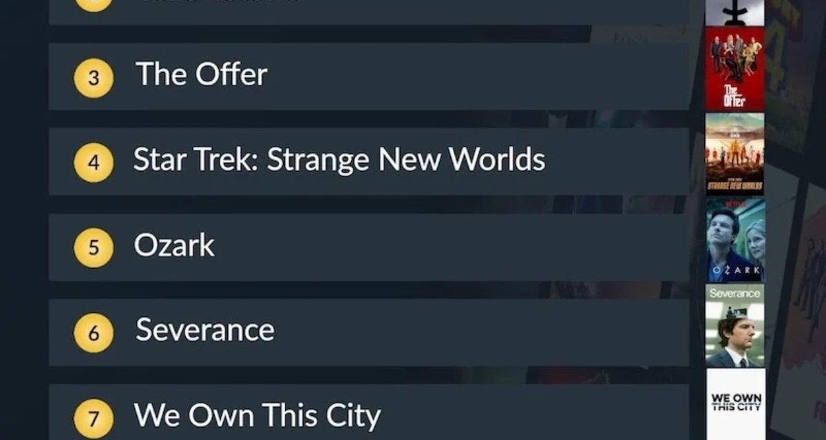 The former was in sixth place on the list; the latter in ninth place. Also, in the top 10, in descending order, are “Better Call Saul,” “Yellowstone,” “The Offer,” “Star Trek: Strange New Worlds,” “Ozark,” “We Own This City,” “Moon Knight,” and “Barry.”