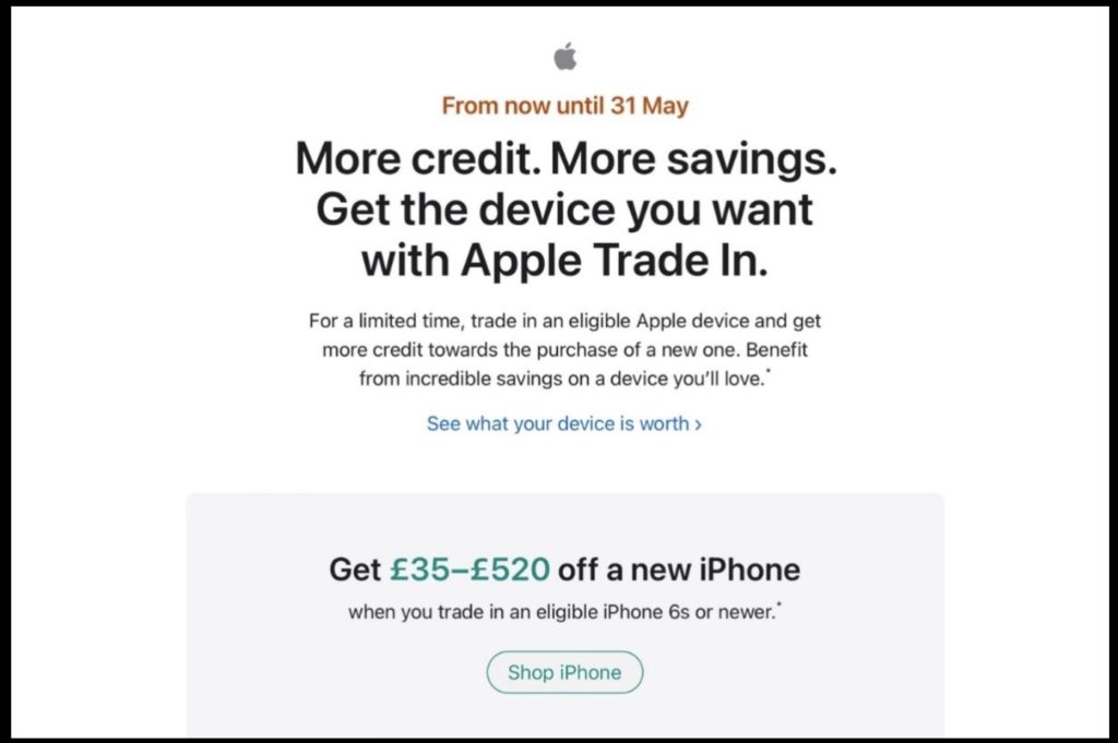 As noted by The Apple Post, Apple has launched a limited-time, trade-in offer for Macs, iPhones, iPads, and Apple Watches and iPad in select geographies (sorry, but not the U.S.)