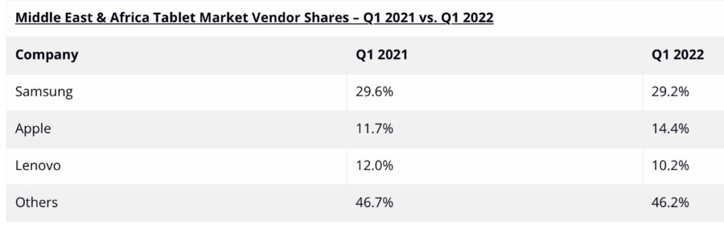 The iPad accounted for 14.4% of the tablet market in quarter one of 2022. That compares to 11.7% in the first quarter of 2021.