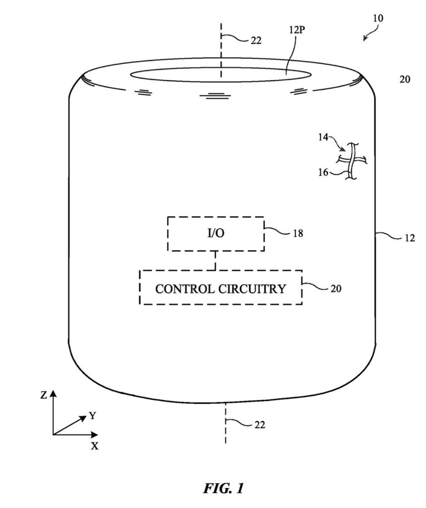 In the patent, Apple says that electronic devices such as voice-controlled assistant devices — which would include HomePods and HomePod minis — may include light-emitting components. During operation, the light-emitting component may emit patterns of light that serve as visual feedback. The feedback helps confirm to a user that an electronic device is operating as desired.