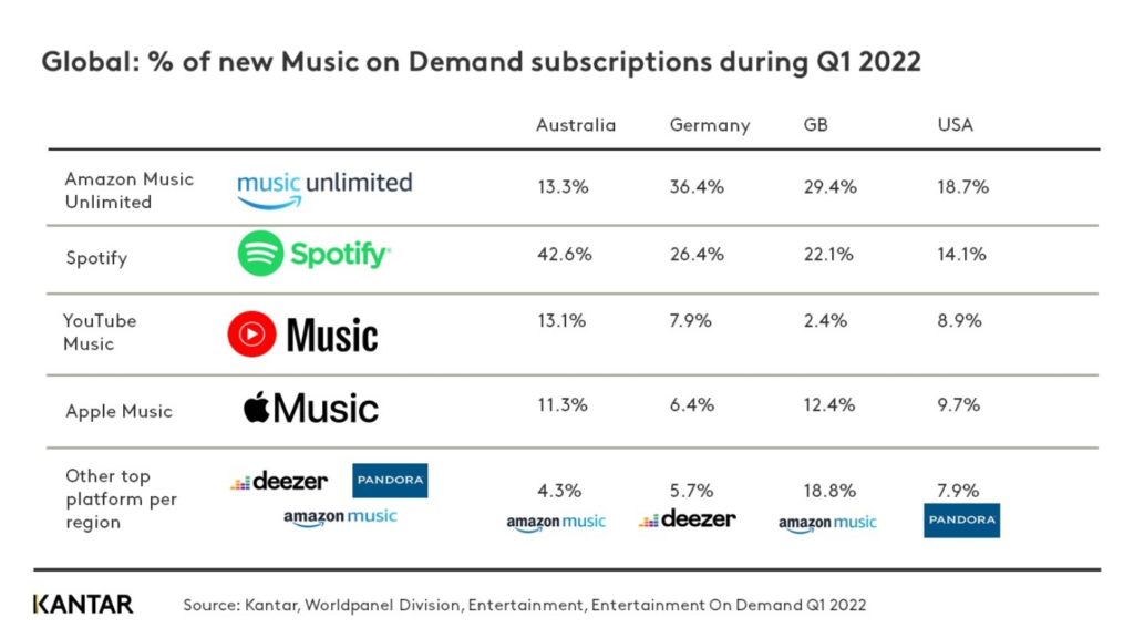 - Value for money is still the #1 driver of new subscriptions in three of Kantar’s four survey regions, with only Germany having a different leading reason (music platforms my friends use)