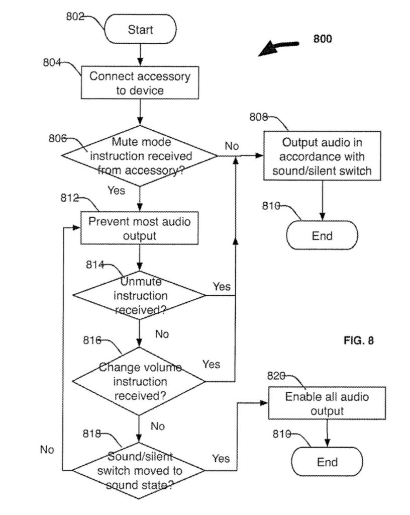 Apple wants its devices to have both sound and silent modes as well as mute and un-mute modes, with seamless interaction between the modes. In some embodiments, the un-mute mode can be the same as the one of the sound and silent modes that’s enabled. The silent mode can be enabled using an interface of the device, while the mute mode can be enabled using an accessory coupled to the electronic device.