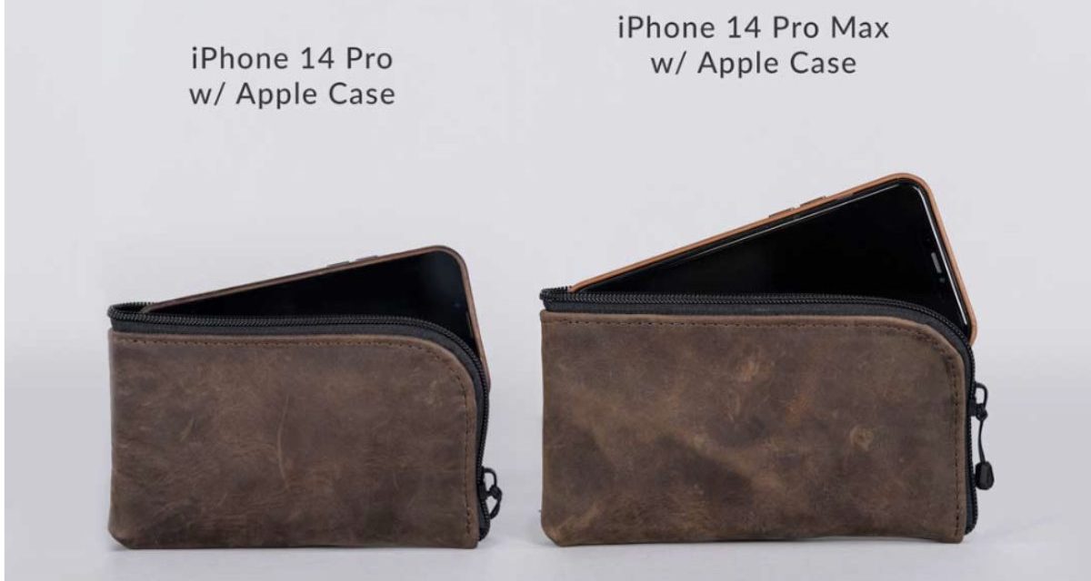 The holsters are available in full-grain leather or rugged ballistic nylon and close with YKK waterproof zippers. The Zip iPhone Holster (pictured above) can fit the iPhone 14 Pro or Pro Max “naked,” in an Apple Case, or in a variety of bulkier third-party, drop-proof iPhone cases along with five credit cards or an AirPods case.