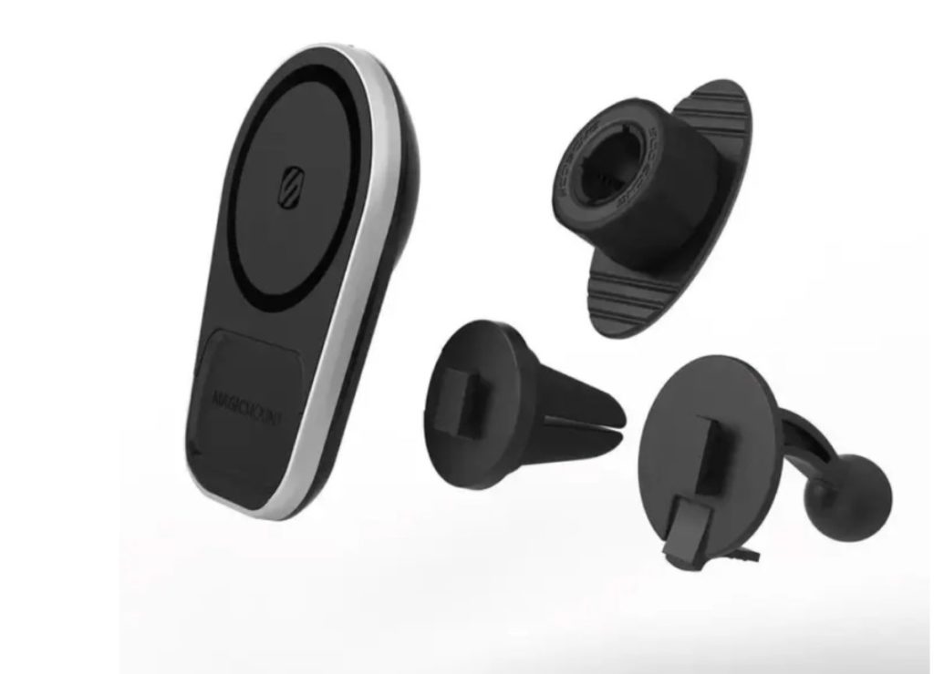 MagicMount Pro2 – Magnetic Phone Mounts securely hold and display iPhone series 12 and later straight out of the box, with or without a MagSafe case. They also hold and display iPhones series X, 11 and SE using the included MagicPlate. Pro2 mounts securely hold phones of all sizes and come in a wide selection of base mounting options including: Window/Dash, Cup Holder, Dash/Vent, Window/Dash Telescoping, and a Tripod/Selfie Stick. MagicMount Pro2 mounts are available on Scosche.com and at select retailers for $44.99.