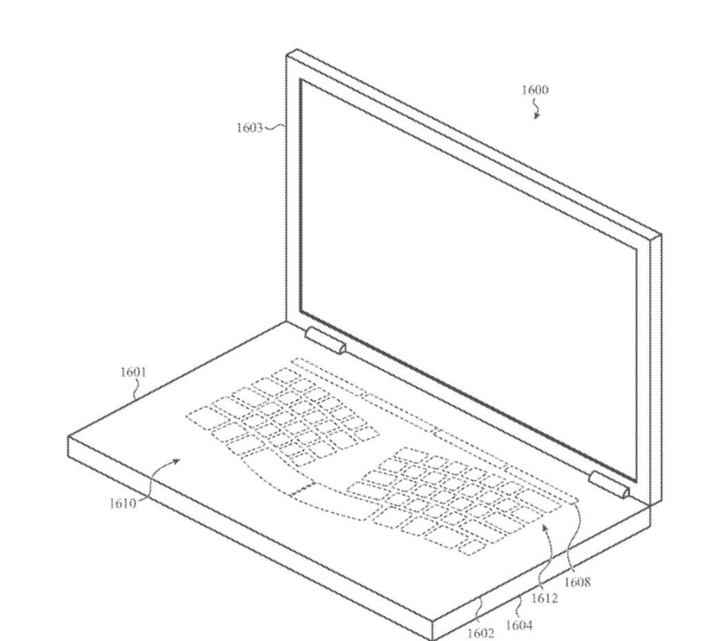 Apple has filed for a patent (number 20220326777) for a “device having an integrated interface system.” It involves a future MacBook Pro made of a single pane of glass that could have a virtual keyboard, virtual trackpad, be able to charge an iPhone, and have a spot for an attachable game device.
