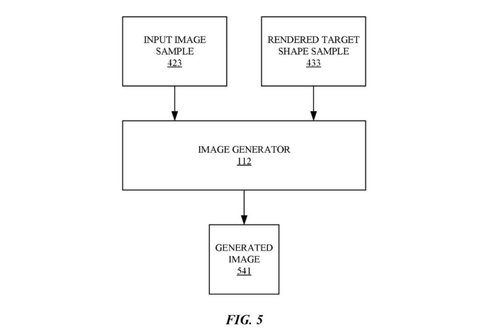 Here’s Apple’s abstract of the patent filing: “One aspect of the disclosure is a non-transitory computer-readable storage medium including program instructions. Operations performed by execution of the program instructions include obtaining an input image that depicts a face of a subject, having an initial facial expression and an initial pose, determining a reference shape description based on the input image, determining a target shape description based on the reference shape description, a facial expression difference, and a pose difference, generating a rendered target shape image using the target shape description, and generating an output image based on the input image and the rendered target shape using an image generator, wherein the output image is a simulated image of the subject of the input image that has a final expression that is based on the initial facial expression and the facial expression difference, and a final pose that is based on the initial pose and the pose difference.”