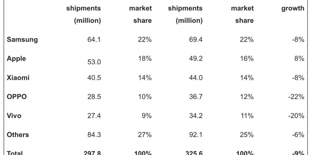 The latest Canalys smartphone analysis indicates weak demand in quarter three of 2022 caused worldwide smartphone shipments to decline by 9% year-on-year to 297.8 million units.