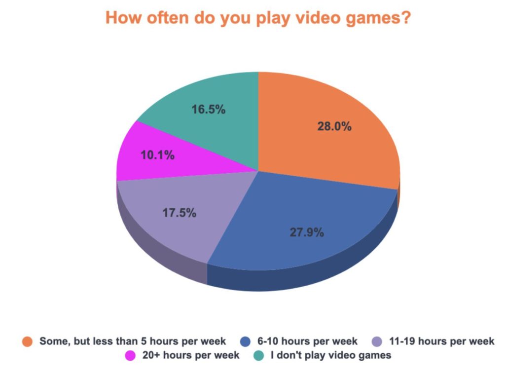 - 10% of people reported that they play video games for 20 or more hours a week.
