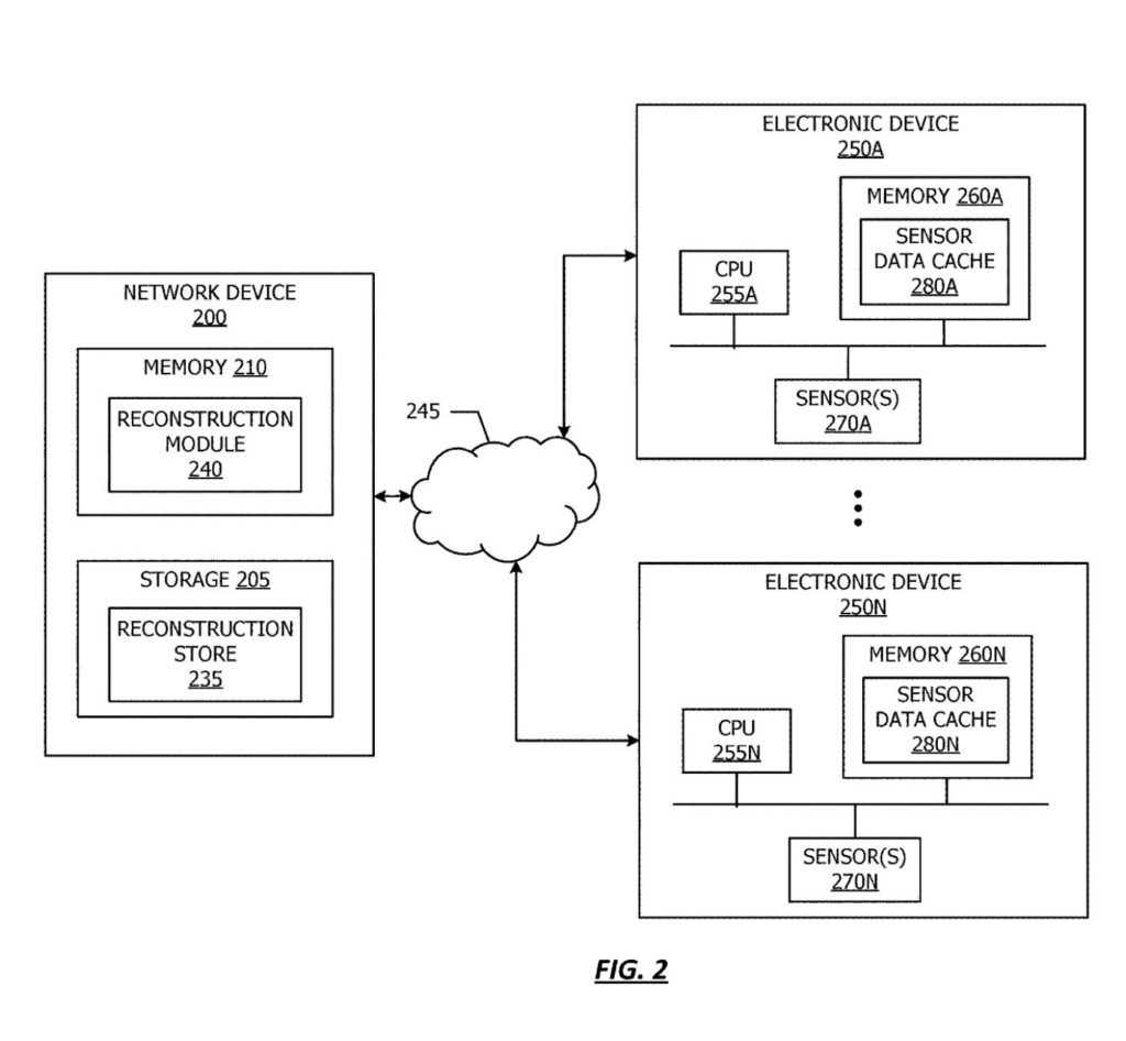 Here’s Apple’s abstract of the patent: “Generating a representation of a scene includes detecting an indication to capture sensor data to generate a virtual representation of a scene in a physical environment at a first time, in response to the indication obtaining first sensor data from a first capture device at the first time, obtaining second sensor data from a second capture device at the first time, and combining the first sensor data and the second sensor data to generate the virtual representation of the scene.”