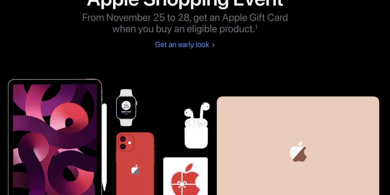 Apple will hold a special “Apple Shopping Event” between Black Friday (November 25) and Cyber Monday (November 28) where customers will be eligible to get a gift card when they purchase eligible products.