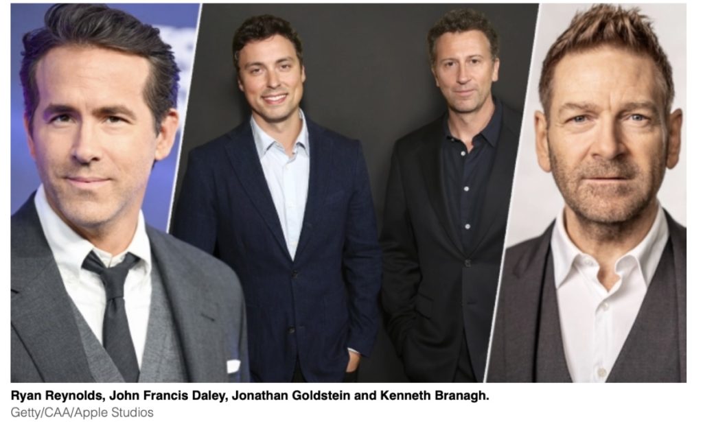 Apple Original Films and Skydance are teaming up for an action-adventure tentpole starring Ryan Reynolds and Kenneth Branagh, according to Deadline.