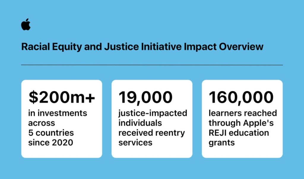 Apple has announced its Racial Equity and Justice Initiative (REJI), a long-term global effort to advance equity and expand opportunities for Black, Hispanic/Latinx, and Indigenous communities, has more than doubled its initial financial commitment to total more than $200 million over the last three years.